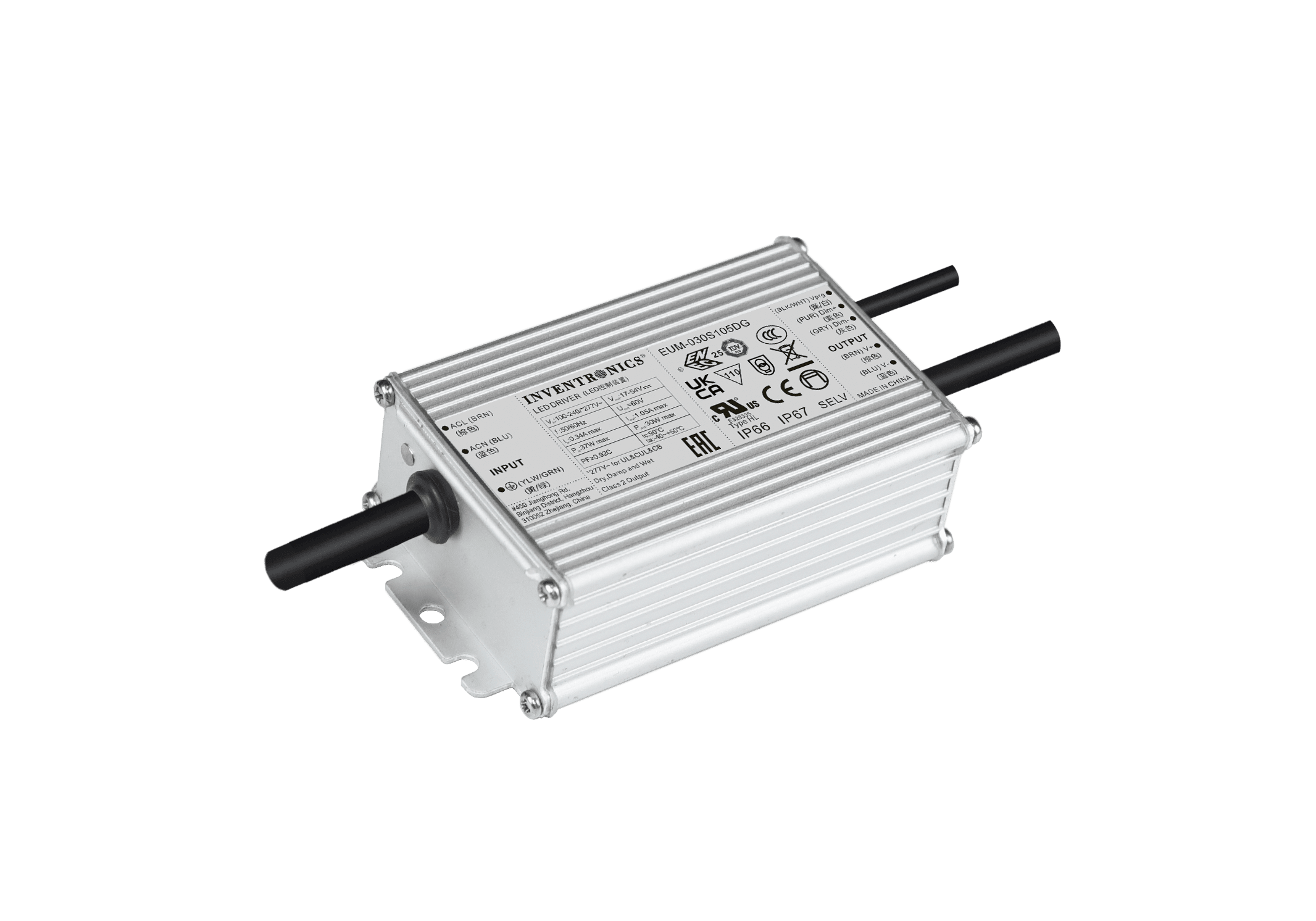 The EUM-030SxxxDx series is a 30W, constant-current, programmable and IP66/IP67 rated LED driver that operates from 90-305Vac input with excellent power factor. It is created for many lighting applications including low bay, tunnel and street, etc. The high efficiency of these drivers and compact metal case enables them to run cooler, significantly improving reliability and extending product life. To ensure trouble-free operation, protection is provided against input surge, output over voltage, short circuit, and over temperature.